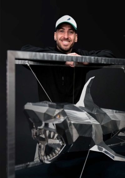 Su trabajo se centra principalmente en la representación de animales, reinterpretados a través de un estilo geométrico y contemporáneo. Cada pieza captura la esencia de la naturaleza y de las criaturas que la habitan, dando lugar a esculturas de gran presencia, con formas poligonales, acabados meticulosos y detalles cautivadores.