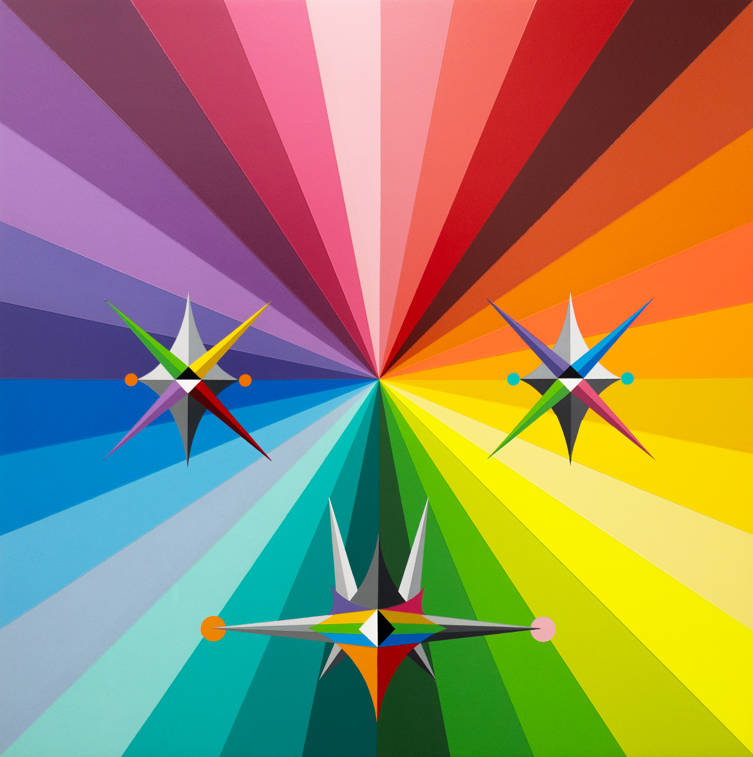 Rituales y Rutinas, la nueva exposición de Okuda San Miguel, es una muestra que celebra el 30 aniversario de los inicios del artista. Un viaje visual y espiritual que conecta lo ancestral con lo futurista, lo indígena con lo queer, lo ritual con lo virtual. Para dar forma a este proyecto, Okuda emprendió un proceso de investigación que lo llevó a Níger, Burkina Faso y Malí, territorios donde exploró la profunda relación entre cultura indígena y geometría, especialmente el triángulo, forma central en su lenguaje artístico. Más allá de la forma, el viaje activó una reflexión sobre el ritual como experiencia onírica y espiritual. Color y geometría funcionan como lenguajes universales que atraviesan culturas y generaciones.