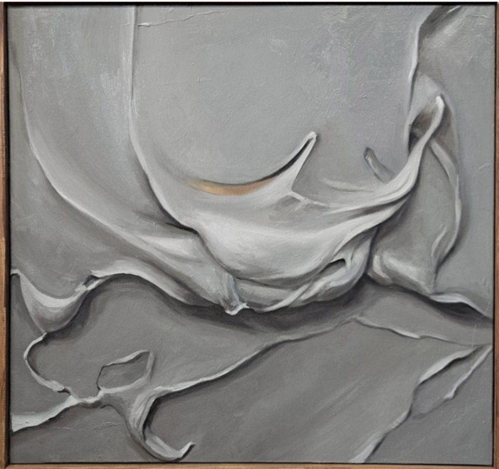 «Desde pequeña me llamaba la atención la erosión de las lluvias, la belleza de los dibujos en el barro y cómo mi padre sorteaba las hondonadas, o cómo a veces no podíamos ir porque era imposible acceder. Ese camino sigue siendo importante y condiciona los planes familiares; mis hijos ya preguntan cómo está cuando llueve. El proyecto en el que trabajo nació después de convertirme en madre, etapa que me hizo replantearme muchas cosas, especialmente mis inquietudes artísticas. Tuve que hacer introspección y buscar mi identidad. Sentí que debía simplificar y crear una obra minimalista ligada al campo y la naturaleza. Empecé a probar texturas en lienzos con materiales que rescatasen ese camino: escayolas, arena, resinas y colores neutros. Me gustaban, pero me faltaba la pintura, mi lenguaje de siempre. Comencé a usar esas texturas como maquetas que luego reinterpretaba en lienzos de gran formato al óleo.»