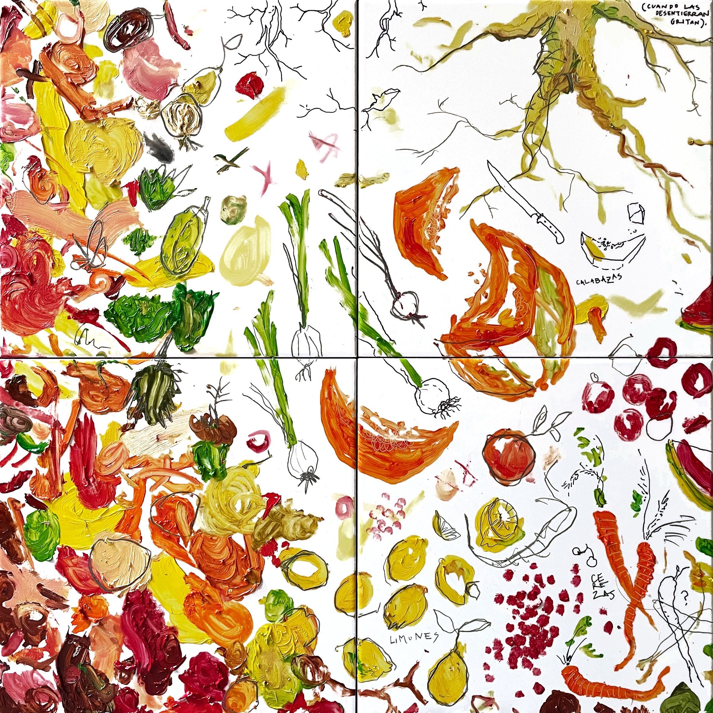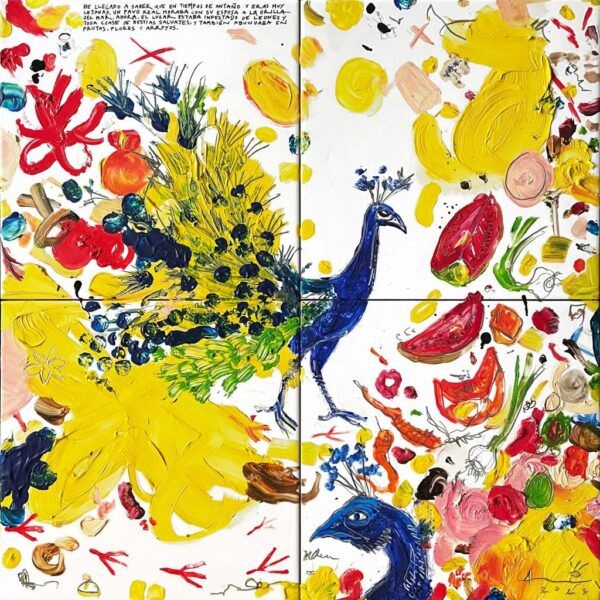 Título: Fábula de las aves, Técnica: Mixta sobre cerámica barnizada , Tamaño: 40 x 40 cm, (Enmarcado)
