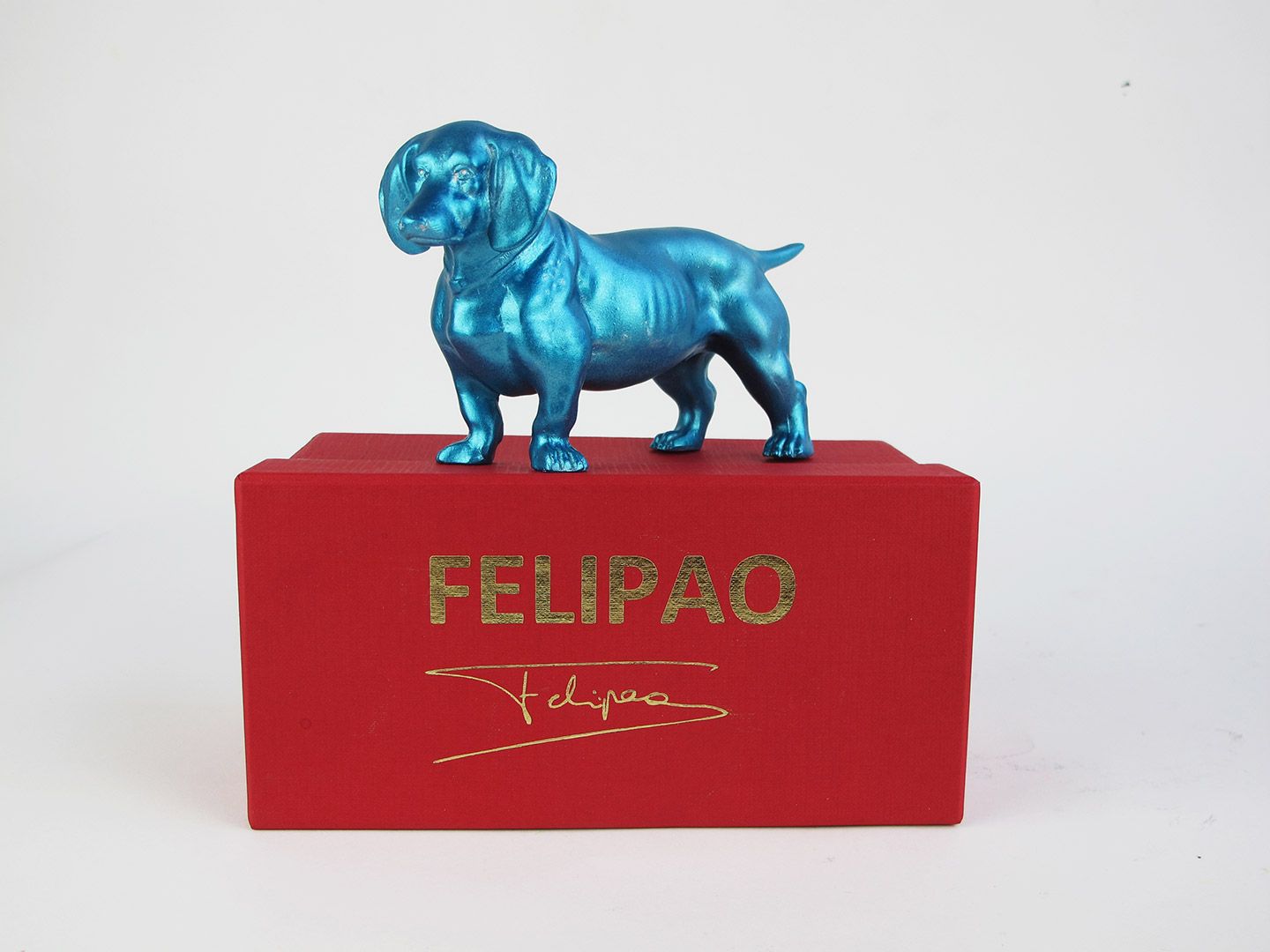 Escultura en clave petit de Felipao. Un teckel realizado en resina bautizado con el nombre LUMP en homenaje al salchicha de Picasso.