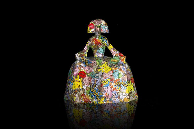 La obra se envía en una caja roja personalizada para la pieza y diseñada por el artista además de una bolsa de terciopelo.