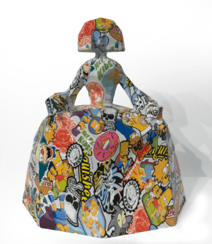la obra se envía en una caja roja personalizada para la pieza y diseñada por el artista además de una bolsa de tela