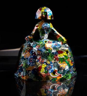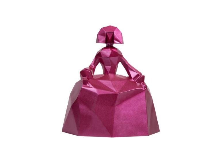 La obra se envía en una caja roja personalizada para la pieza y diseñada por el artista además de una bolsa de terciopelo.